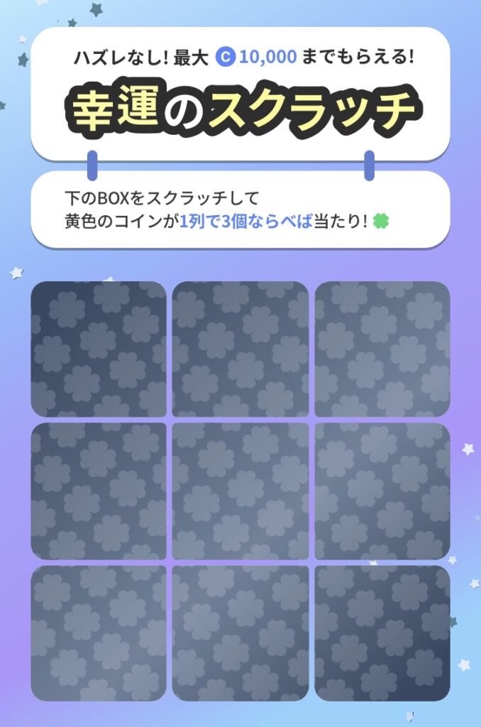 1日10回までスクラッチに挑戦でき、1~10,000コインを獲得できます。