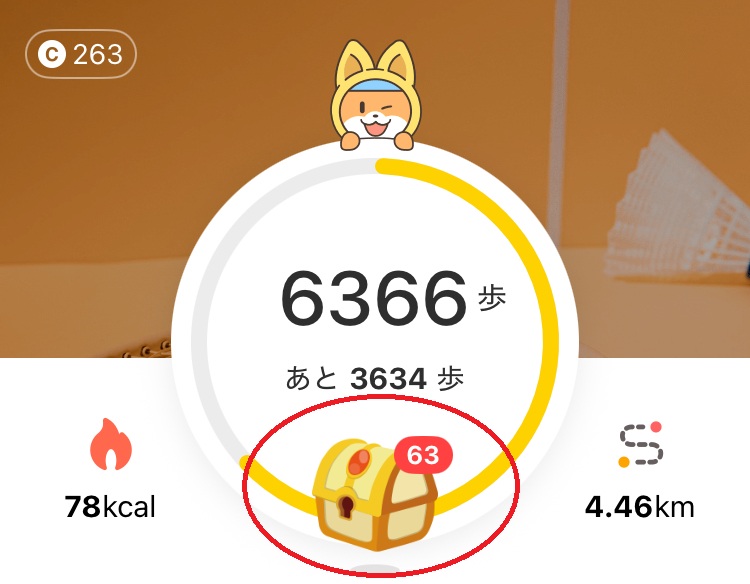 100歩ごとに1コイン、宝箱をタップすると獲得できます。