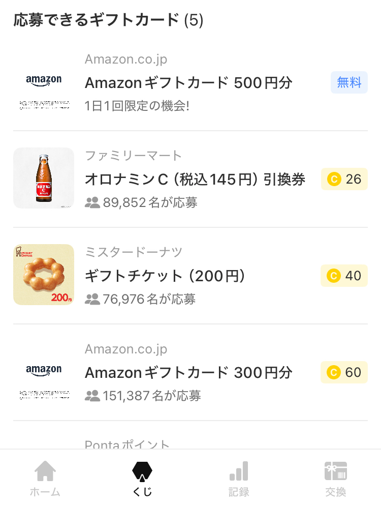 ちなみに、Amazonギフトの抽選はコイン不要で1日1回応募OK!