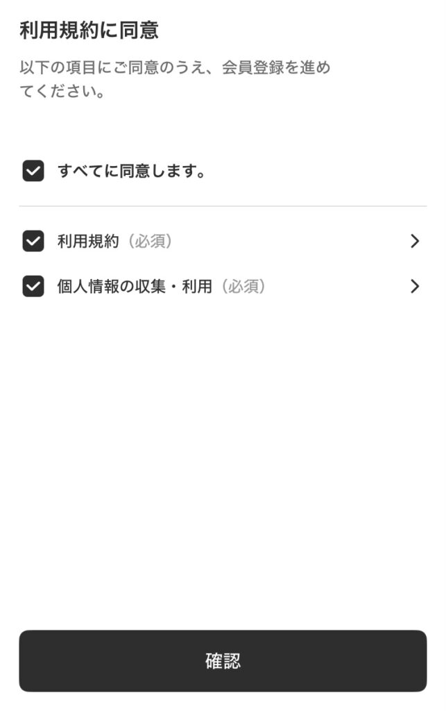 利用規約と個人情報の収集・利用を確認して、すべてに同意しますに✅します。