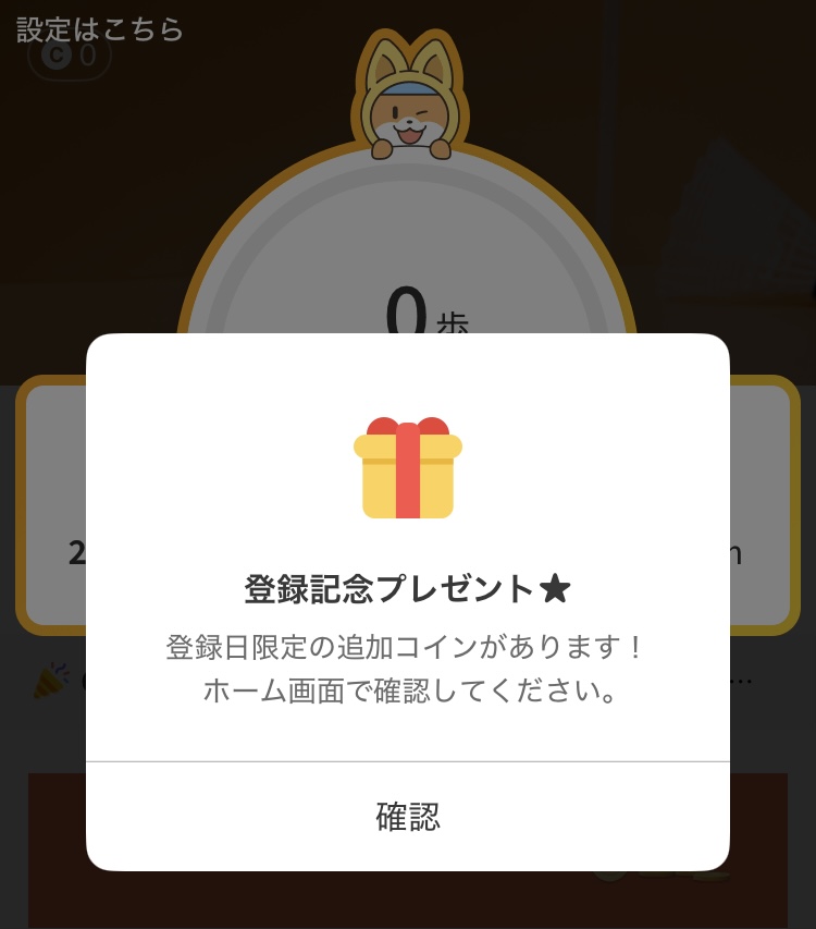 10歩達成で、登録記念として100コイン受け取れます。