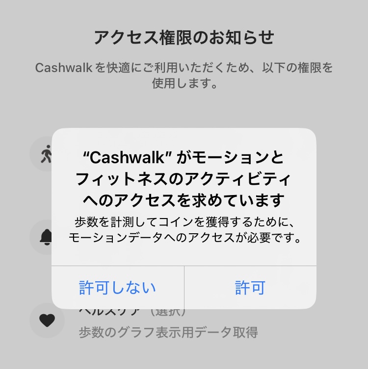 歩数を自動で取得するために、モーションとフィットネスのアクティビティへのアクセスを「許可」します。