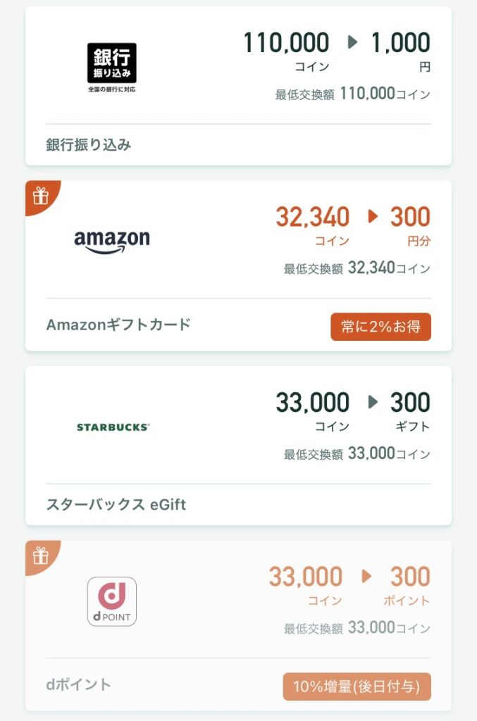 - ポイントの交換先が豊富