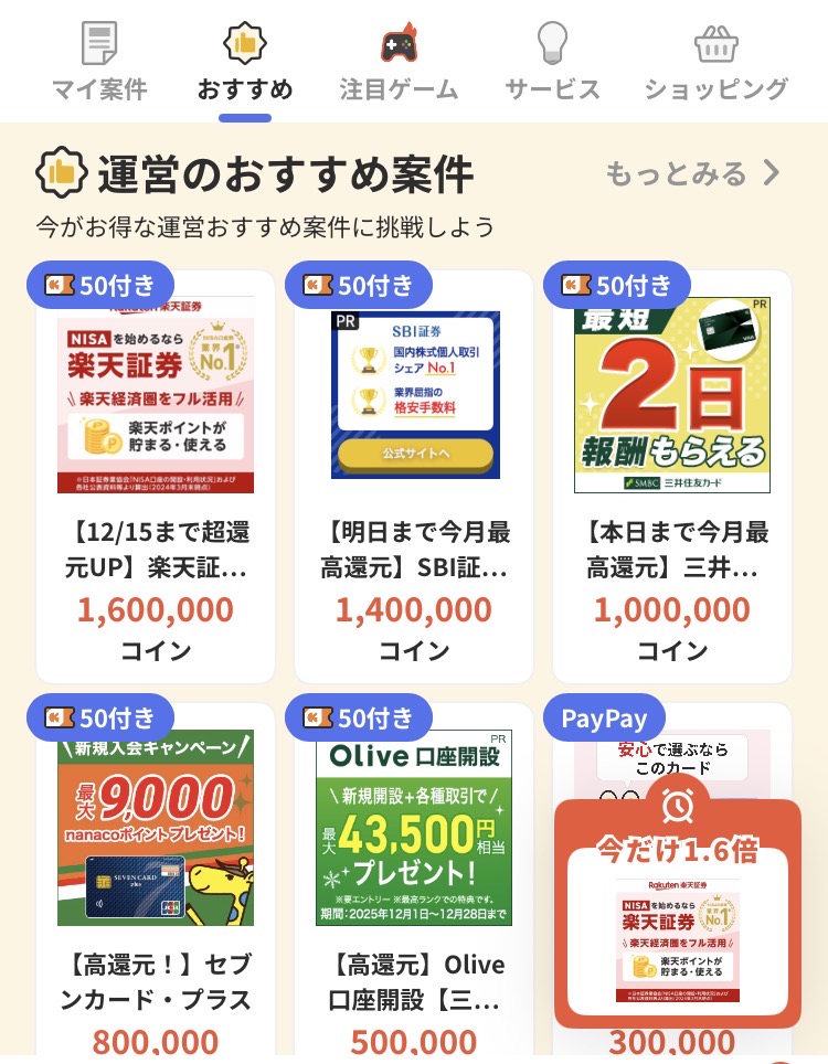 レシチャレで紹介されている案件を利用してコインを獲得できます。