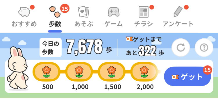 「くじ引き」をするには、歩数やミッションでチケットを貯める必要があります。