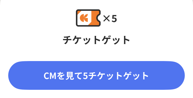 歩数500歩ごとに動画広告を見て、チケットを5枚獲得できます。