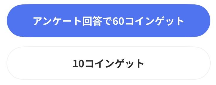 アンケートに回答して60コイン獲得するか、そのまま10コイン獲得するか選ぶことができます。