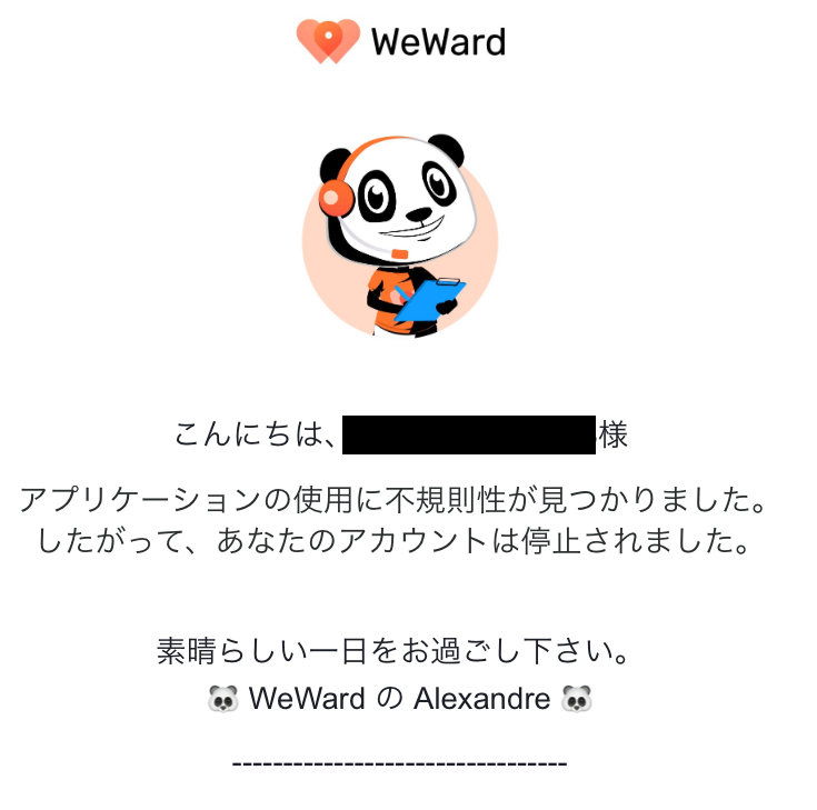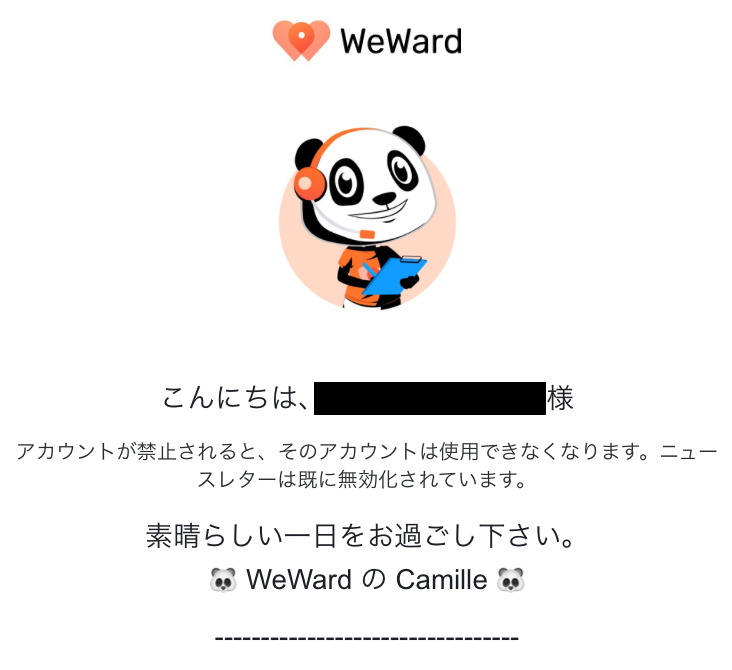 もうこのまま復活しないのではないかと不安を感じたため、WeWardに問い合わせてみました。