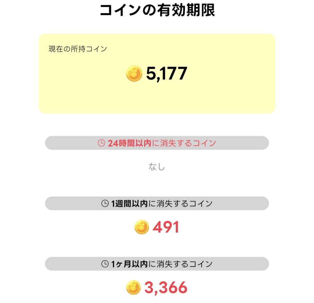 1日あたり200コイン獲得できている場合、有効期限内に36,000コイン貯めることができる計算になります。ただし、それ以下しか貯められてない方は注意が必要です。