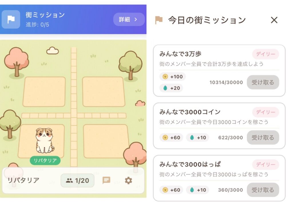 ミッションはログインや500歩達成するだけの簡単なものもあるため、毎日忘れず回収しましょう。