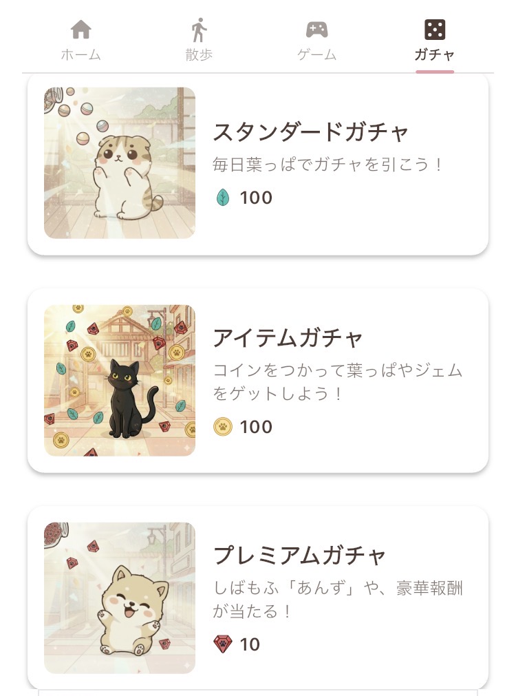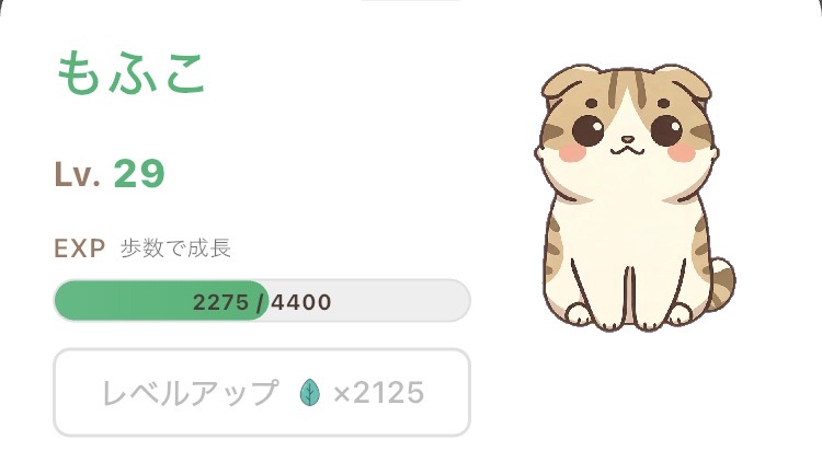 スマホの中の“もふ”キャラと一緒に歩くだけで、毎日の通勤・通学・散歩がそのままポイントに変わります。アプリを開けばその日の歩数がすぐに確認でき、ゲーム感覚でコツコツ貯められるのが魅力です。