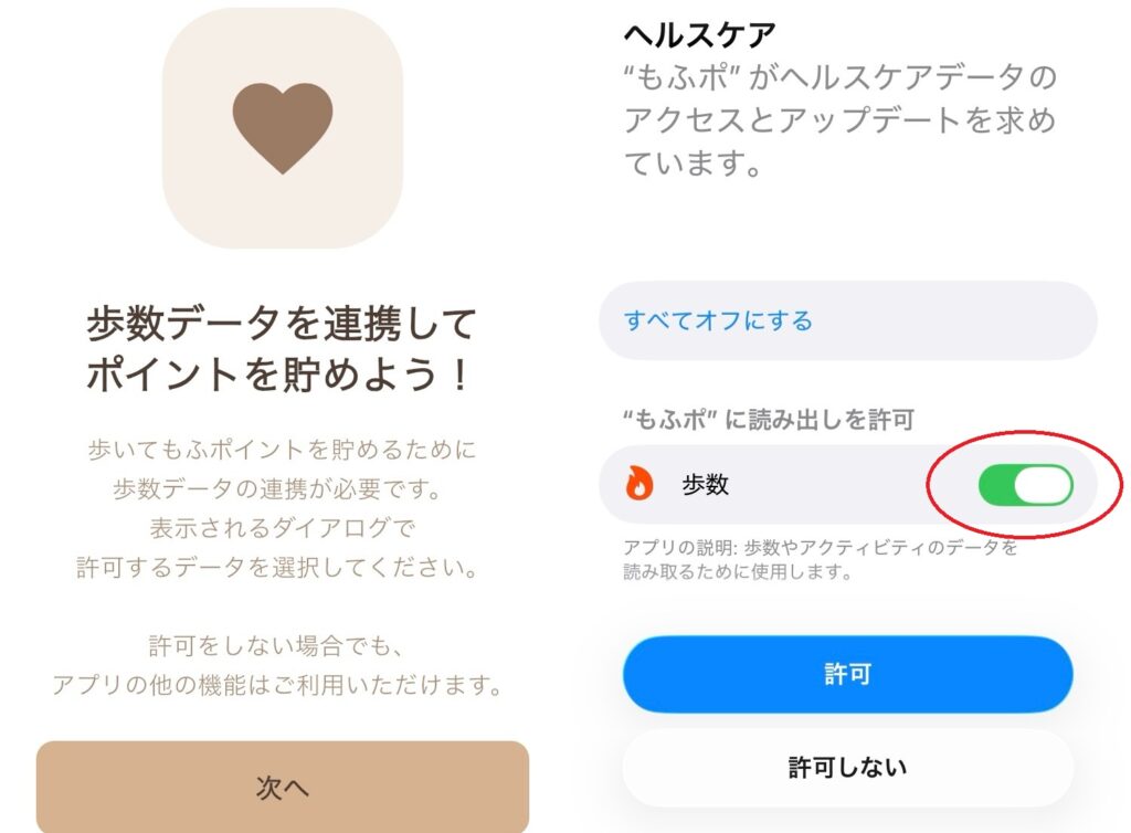 歩数を取得するために、ヘルスケアやヘルスコネクトと連携します。