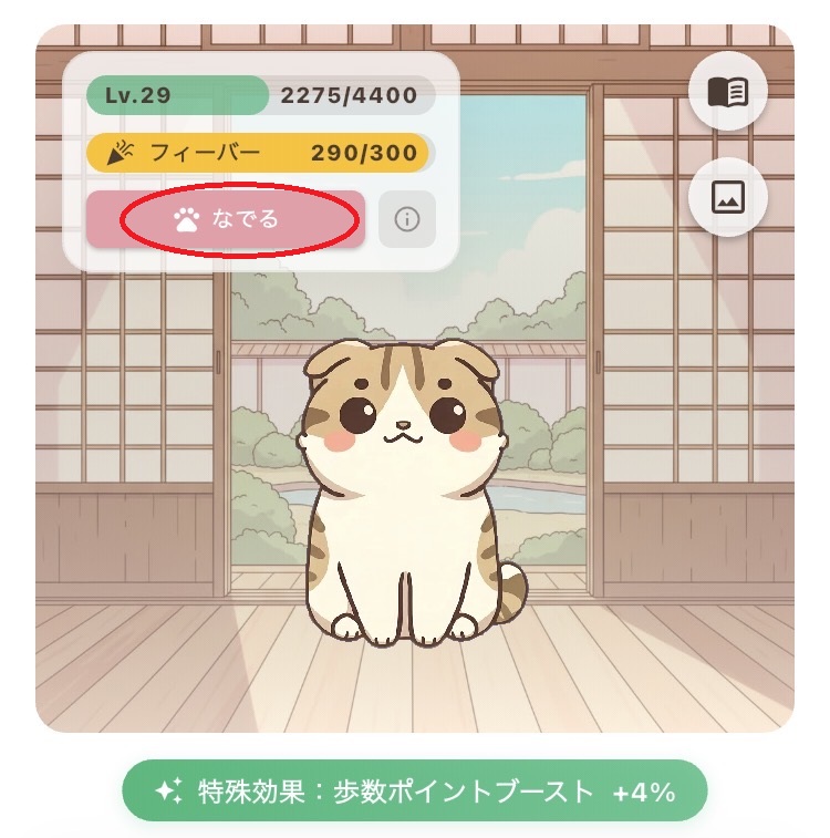 レベルを上げていくことで、歩数でもらえるポイントが増えます。