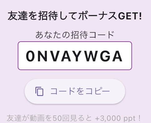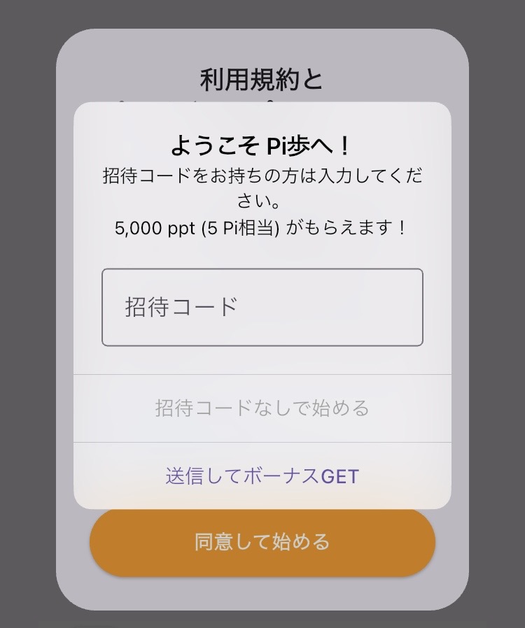 招待コードを入力して始めることで、5,000ppt(5Pi相当)がもらえ、少しお得に始めることができます。