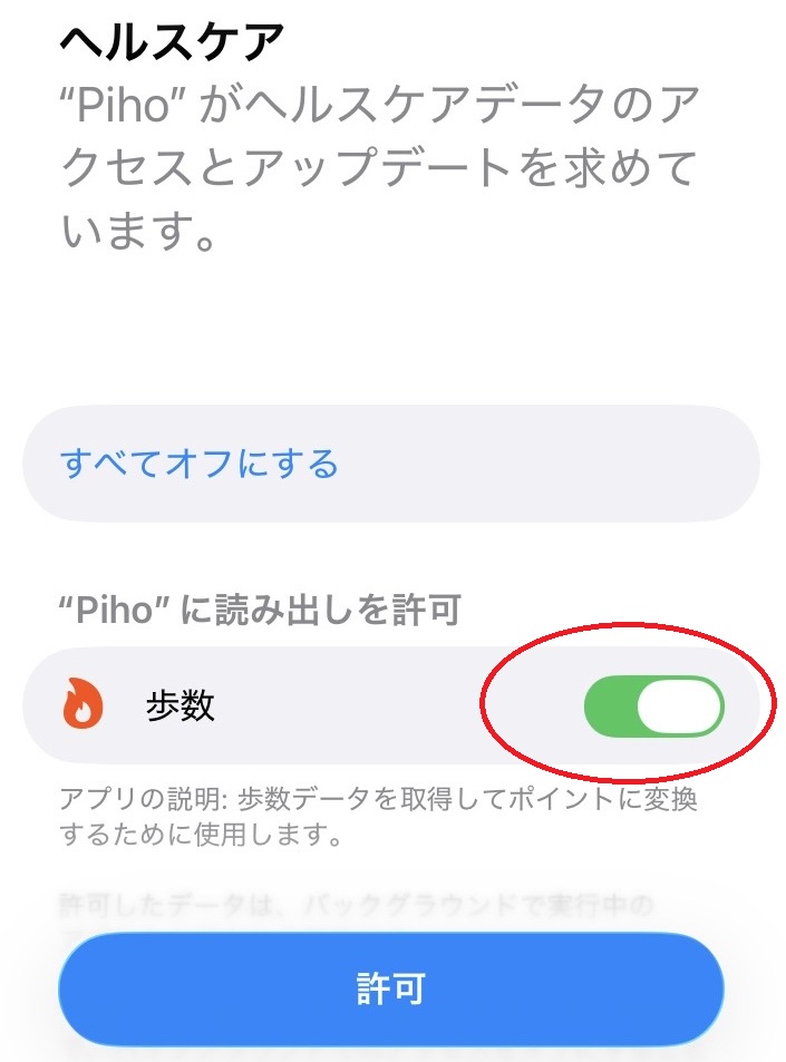 歩数データを取得するため、iOS版はヘルスケアと、Android版はヘルスコネクトと連携します。