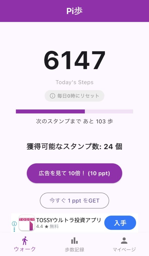 歩数は0時にリセットされるため、獲得もれに注意しましょう。