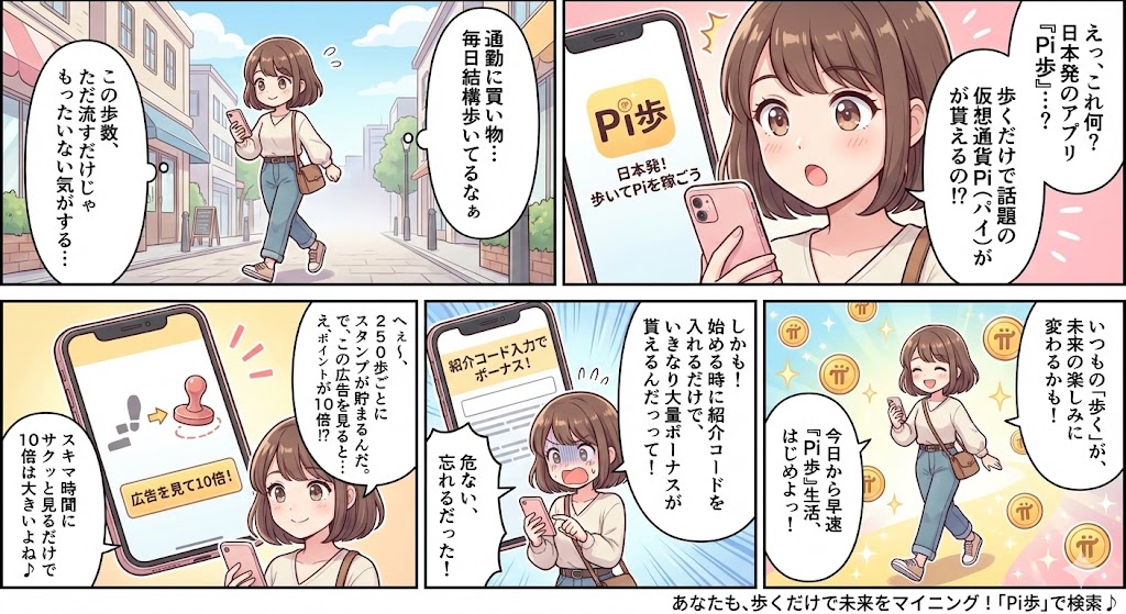Pi歩は、歩くだけでポイントが貯まり、将来的に暗号資産「Pi(パイ)」へつなげられるユニークなポイ活アプリです。