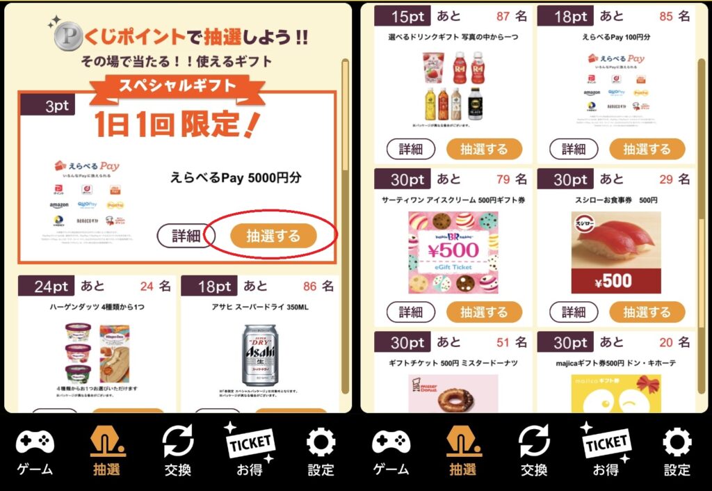 どの抽選に参加しても構いませんが、1日1回のスペシャルギフトは、挑戦しておきましょう。